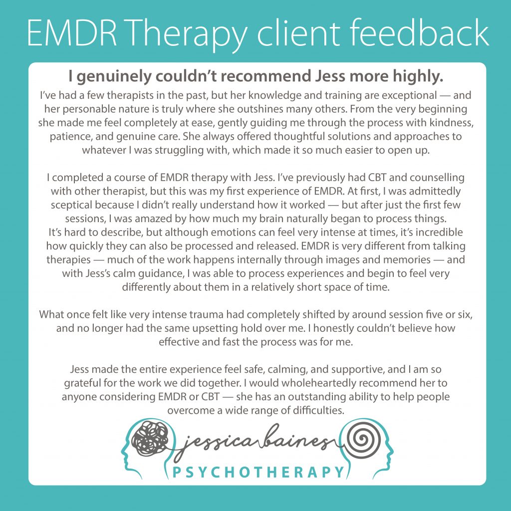 Jess now offers Eye Movement Desensitisation and Reprocessing